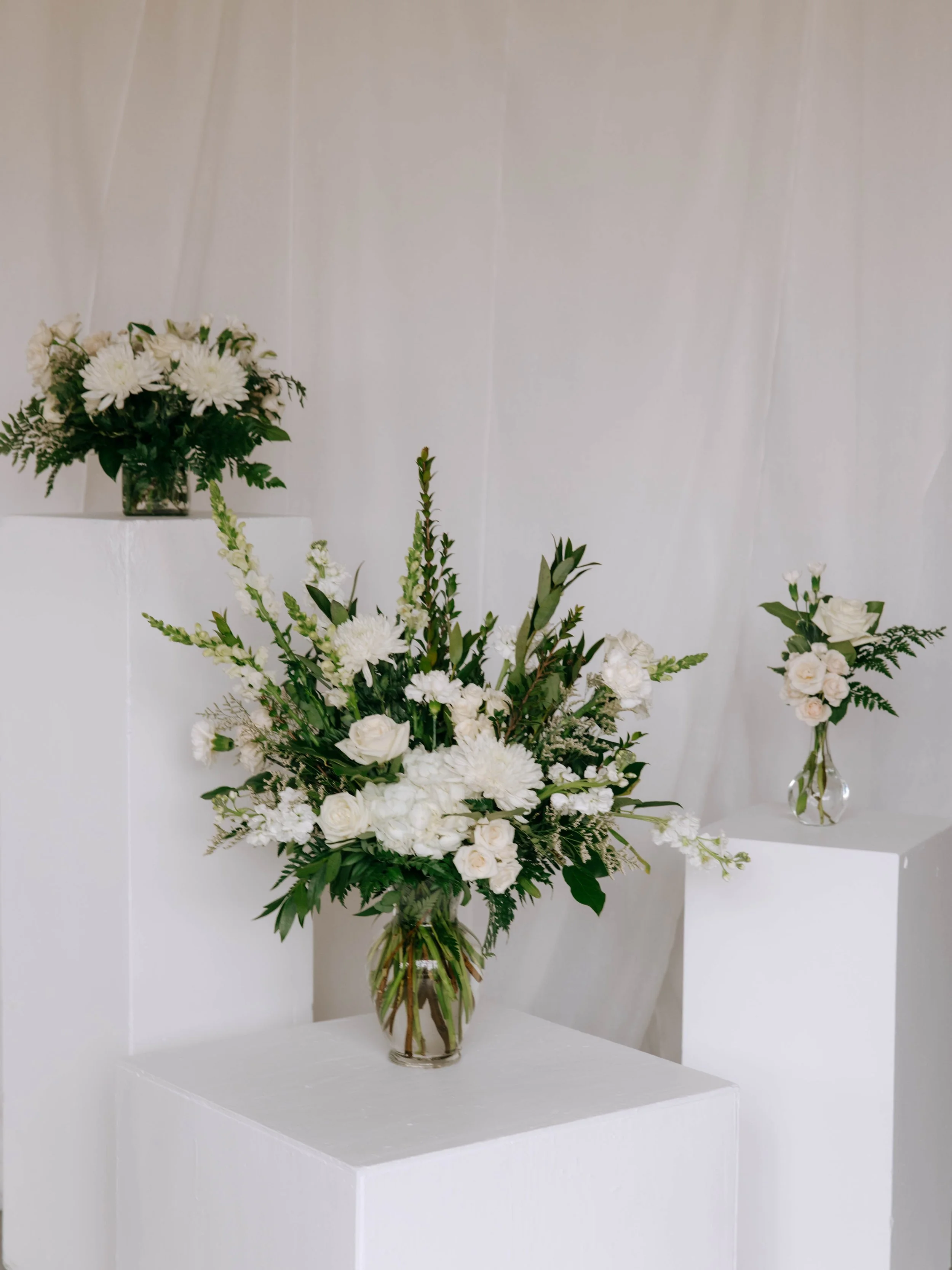 These florals are not customizable and will be available in three color palette selections: White and Green + Pastel + Bold